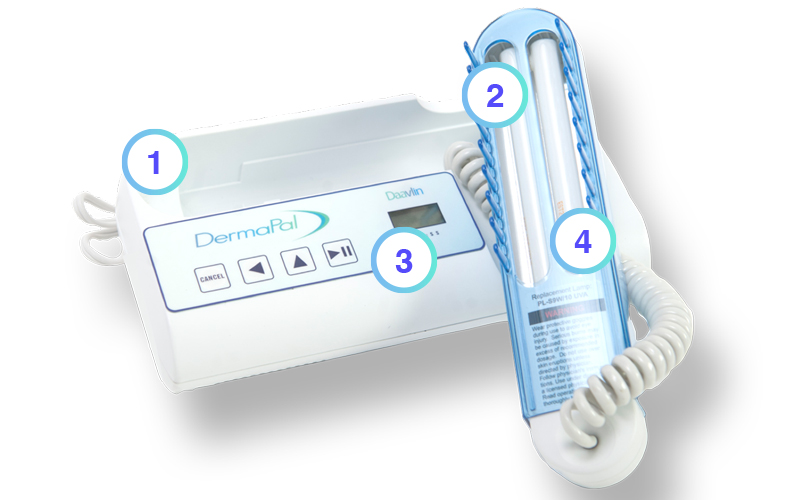DermaPal is a home NB:UVB phototherapy unit that provides: