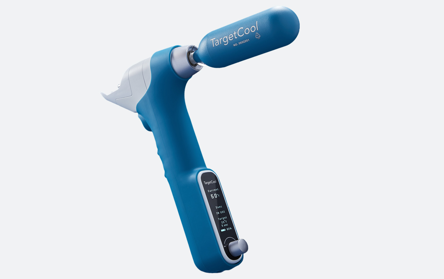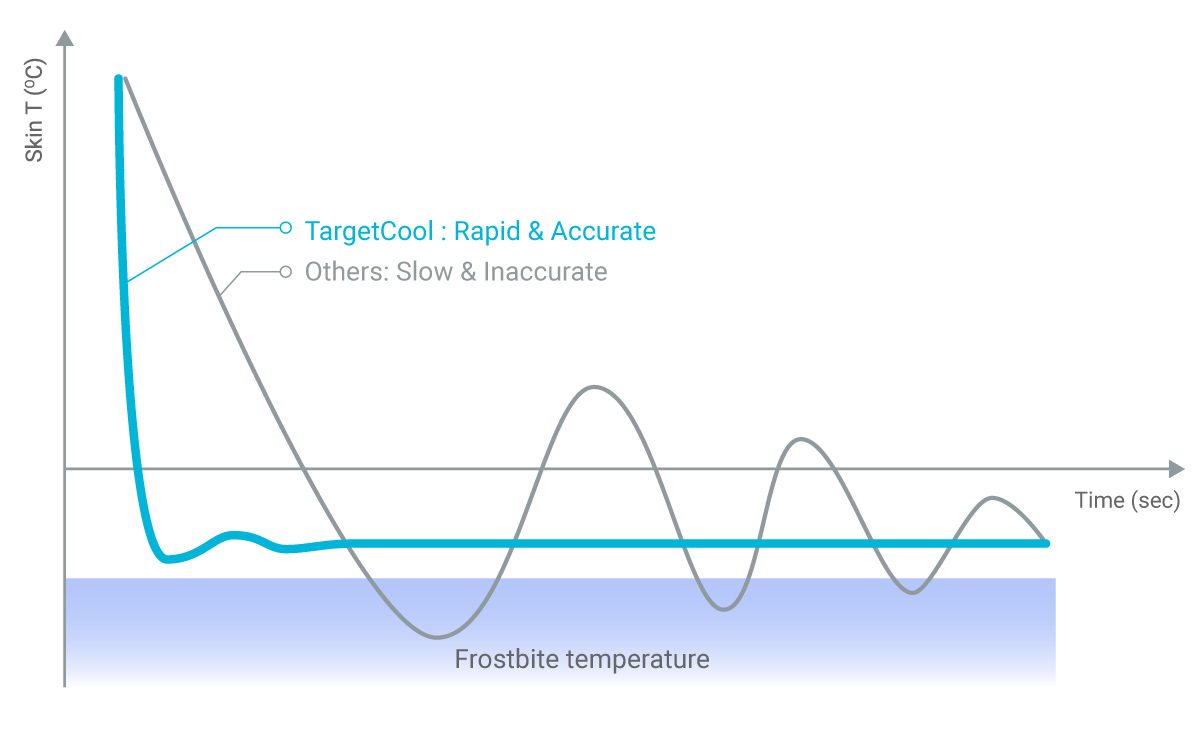 • TargetCool starts with a burst of cryogen that swiftly cools skin to the desired temperature.