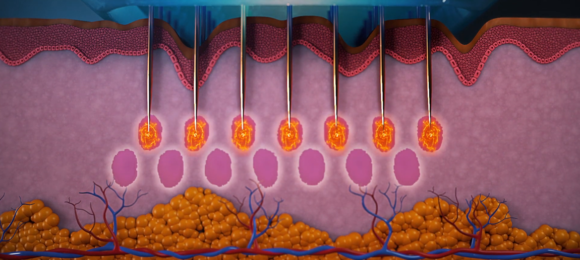 •  وتعمل طاقة الترددات اللاسلكية عبر التأثير حرارياً على الطبقات العميقة من البشرة. وتؤدي الحرارة لتخثّر في ٣ مستويات مختلفة من العُمق حيث تعمل الآلية عبر إطلاق جرعة من الطاقة لكل عمق.