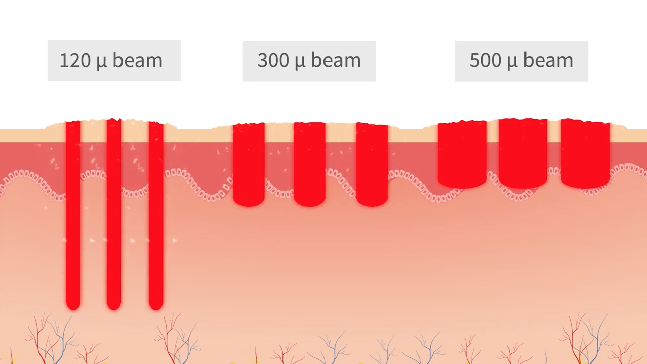 إستخدام خيار القطر الدقيق لحزمة الليزر يتسبب في تبخير جزء أصغر من البشرة مما يسهل تحمل المرضى ويقلل الفترة اللازمة لإعادة تكوين الأنسجة وبالتالي تقل فترة النقاهة.