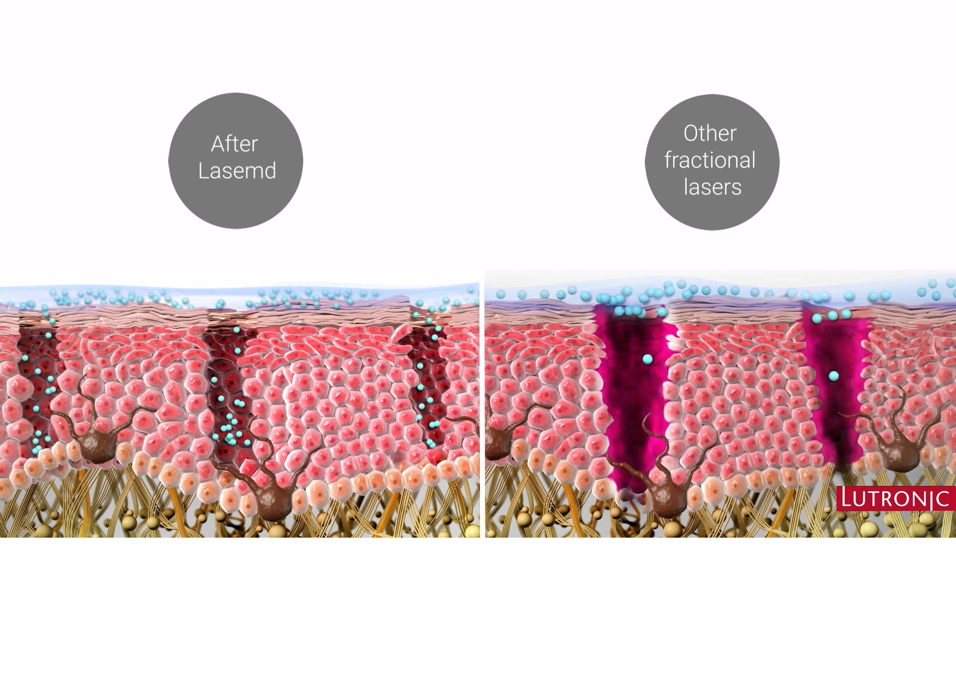 - التخثُر: ينكمش الكولاجين في الطبقة التالية بسبب إمتصاص جرعة الطاقة كاملةً مما يُحفِز البشرة على إنتاج كولاجين جديد وبالتالي تتحسن نضارة البشرة.