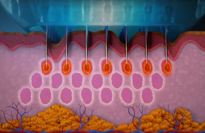 • Reaching the right depth in every pulse is critical to spread the energy dose across all targeted tissues. Additionally restoring the skin volume needs reaching the temperature needed for coagulation precisely... not a lower or a higher temperature. Therefore, the inaccurate insertion depth can lead to either completely missing some targeted areas or to an unintentional overlap of the thermal effect that leads to exceeding target temperature.