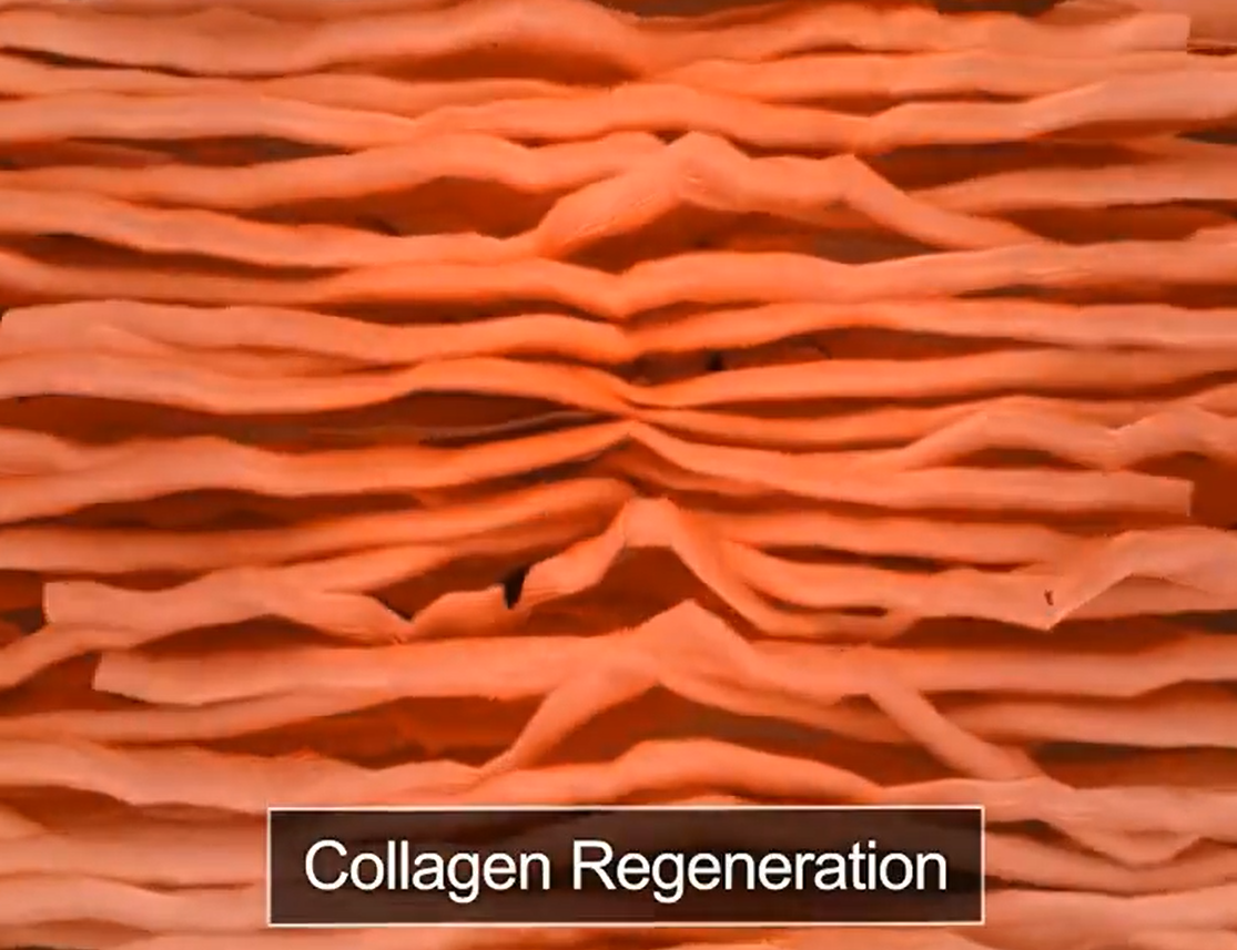 - The 1550nm targets water-containing tissues within the depth of 800 microns, which generates thermal effect that leads to neocollageneis and the replacement of old collagen & fibrous tissues with new collagen.